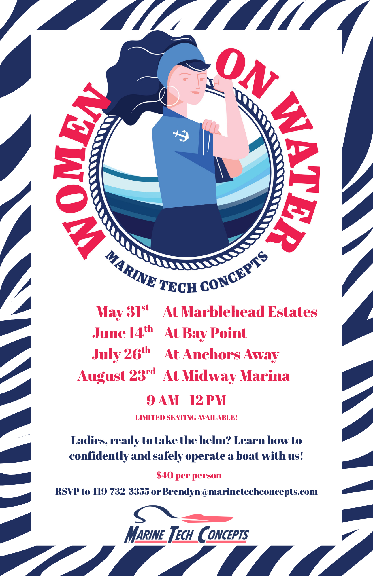 Marine Tech Concepts hosts Women On Water boat operating classes at various locations in the Marblehead, Catawba and Port Clinton area. Our classes are designed to educate women on proper boating and get you on the water with our licensed USCG Captains. Our small group seminar are designed to build confidence by presenting information in […]
