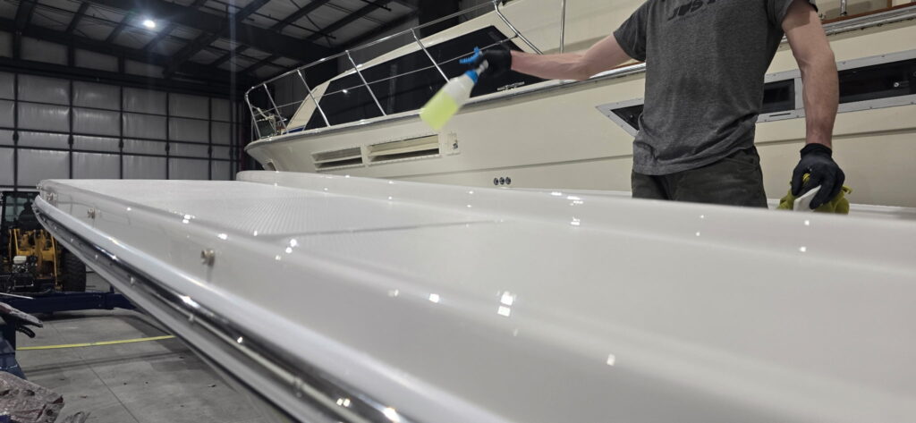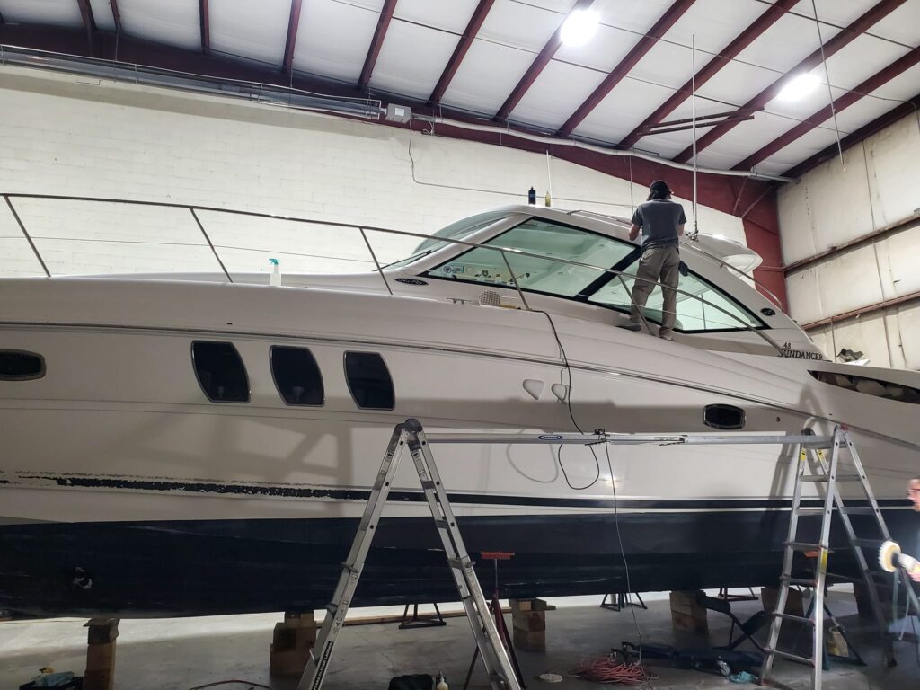 We perform a full multi-stage buff and wax service that removes oxidation, restores depth and shine, and protects your gel coat from harsh UV and environmental damage. Your boat will leave with a showroom-quality finish.