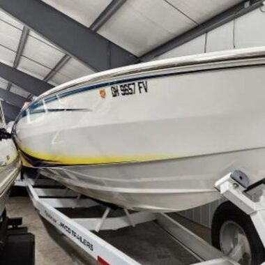 Not only is this 38 Top Gun a performer, but it also turns heads with custom paintwork throughout, making it as stylish as it is fast. It’s equipped with a Myco custom triple-axle trailer, perfect for secure and easy transportation wherever your next adventure takes you.