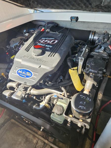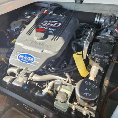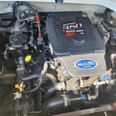 Powerful Performance: Powered by twin 350 Mag MPI engines paired with Bravo 3 drives, this boat delivers exhilarating speed and precision handling.