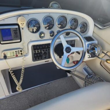 Entertainment & Comfort: The well-appointed bar/console, compass, and full cockpit covers offer a touch of luxury. Relax in the spacious cockpit, complete with snap-in carpet for easy maintenance.