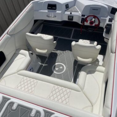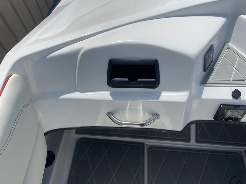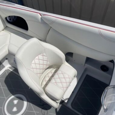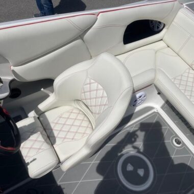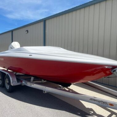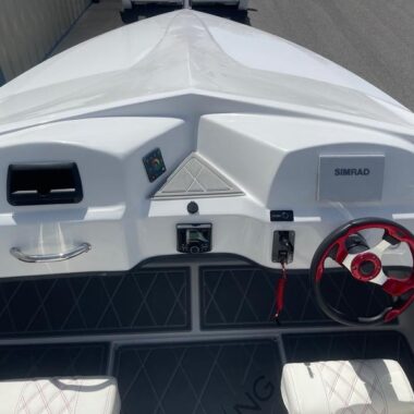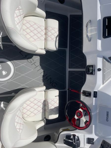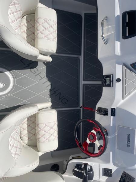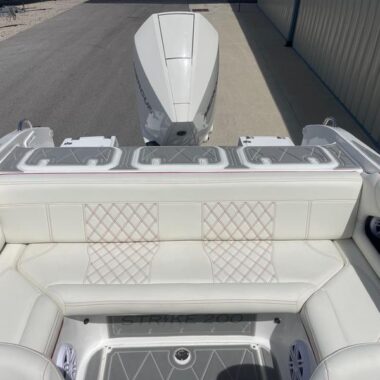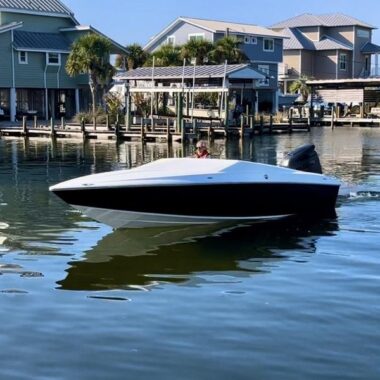 Every inch of the 20 Strike is crafted with purpose. From its lightweight composite hull and aggressive pad bottom to the high-performance trim setup, this boat is built to plane fast, corner hard, and dominate inshore and inland waters. With seating for four, an open cockpit layout, and custom upholstery, it’s just as comfortable as it is capable.